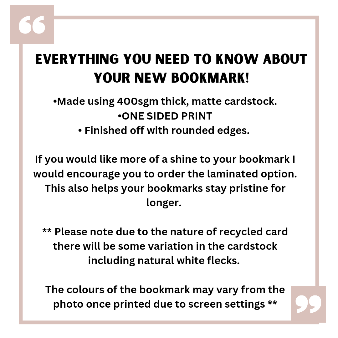 The colours of the bookmark may vary from the photo once printed due to screen settings **