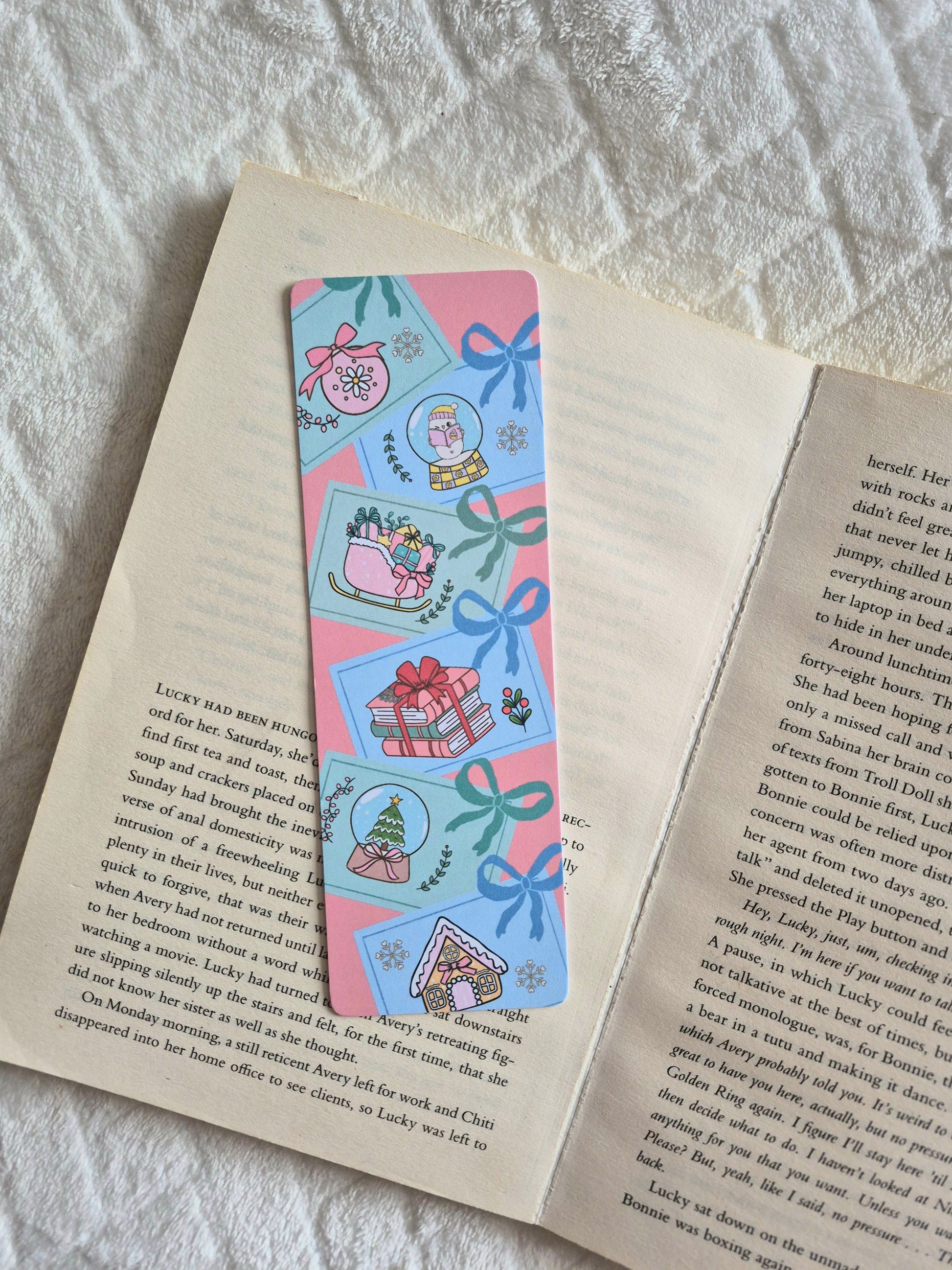 A festive bookmark featuring christmas themed postcards. The ideal gift or reading accessory for booklovers!