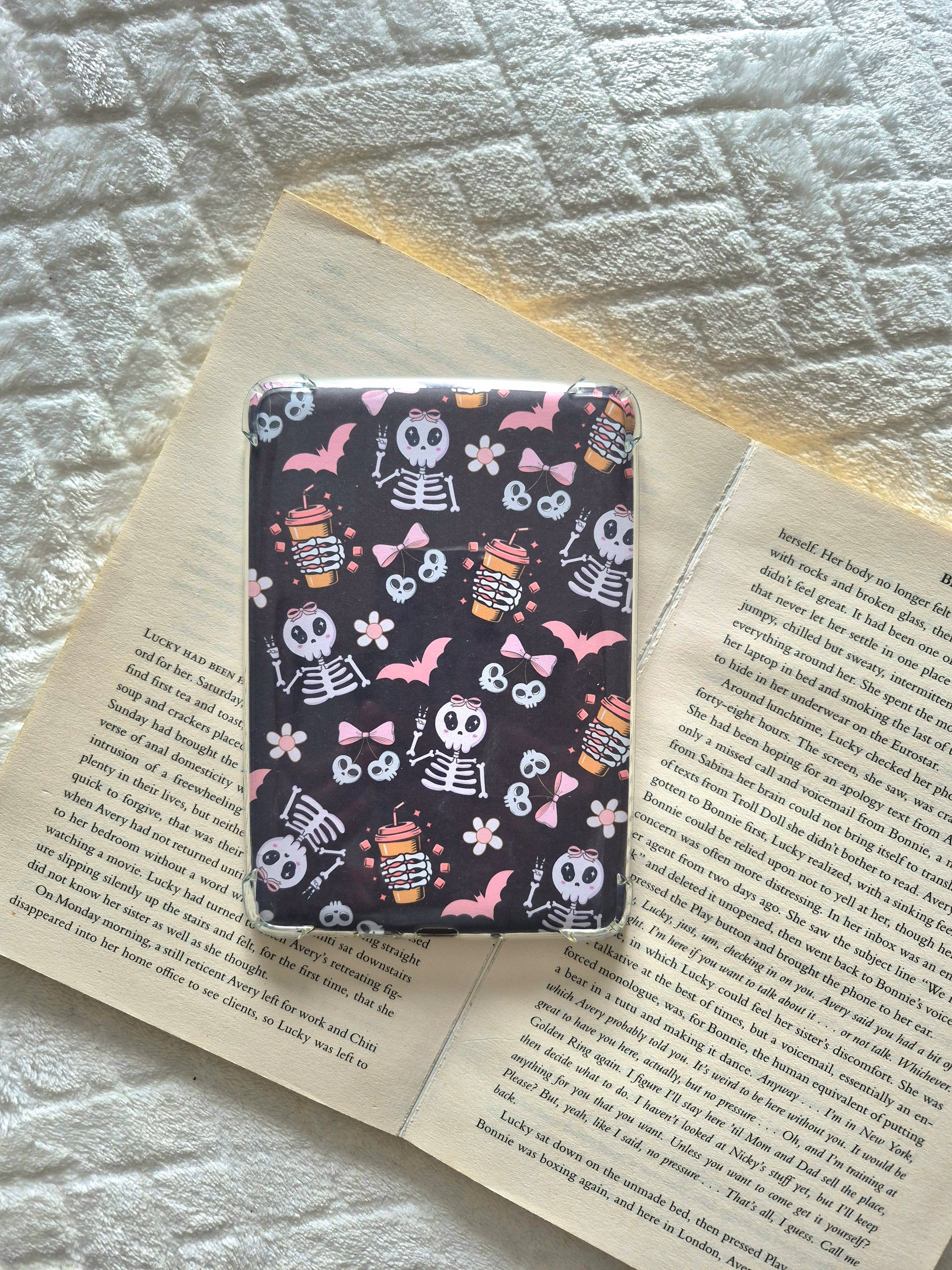 Get ready for spooky season with this gothic Kawaii skeleton and bats kindle insert - Easy to take in and out when you feel like changing up your style to match your current mood!