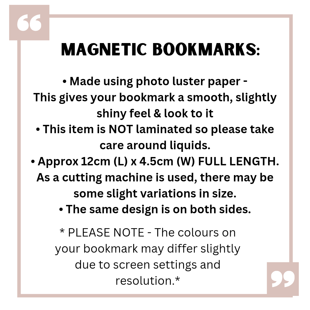 • Bookmark has NOT been laminated so it is NOT WATERPROOF so please take care around liquids.
