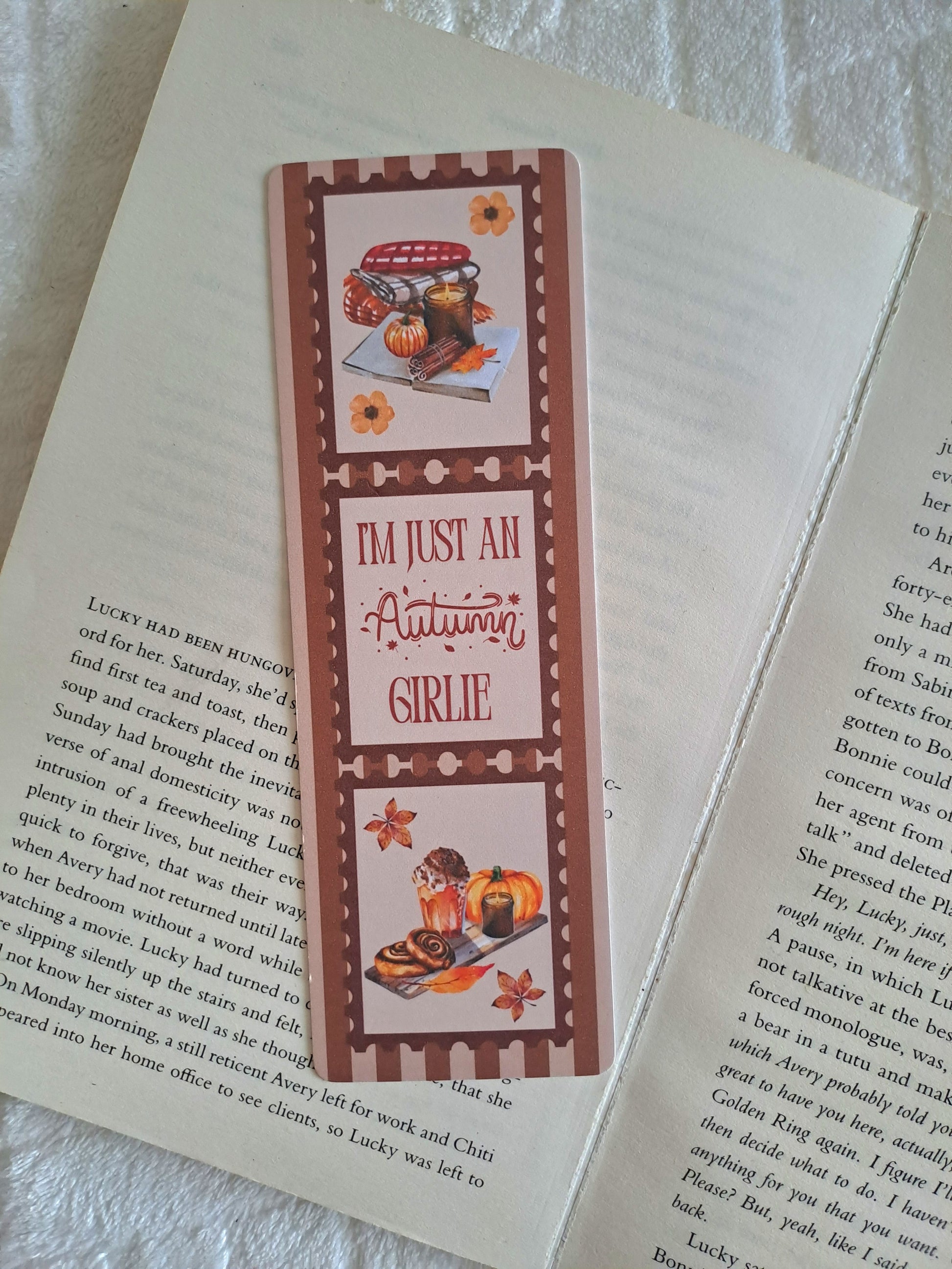I'm just an autumn girlie stamps bookmark. The perfect reading accessory for booklovers!