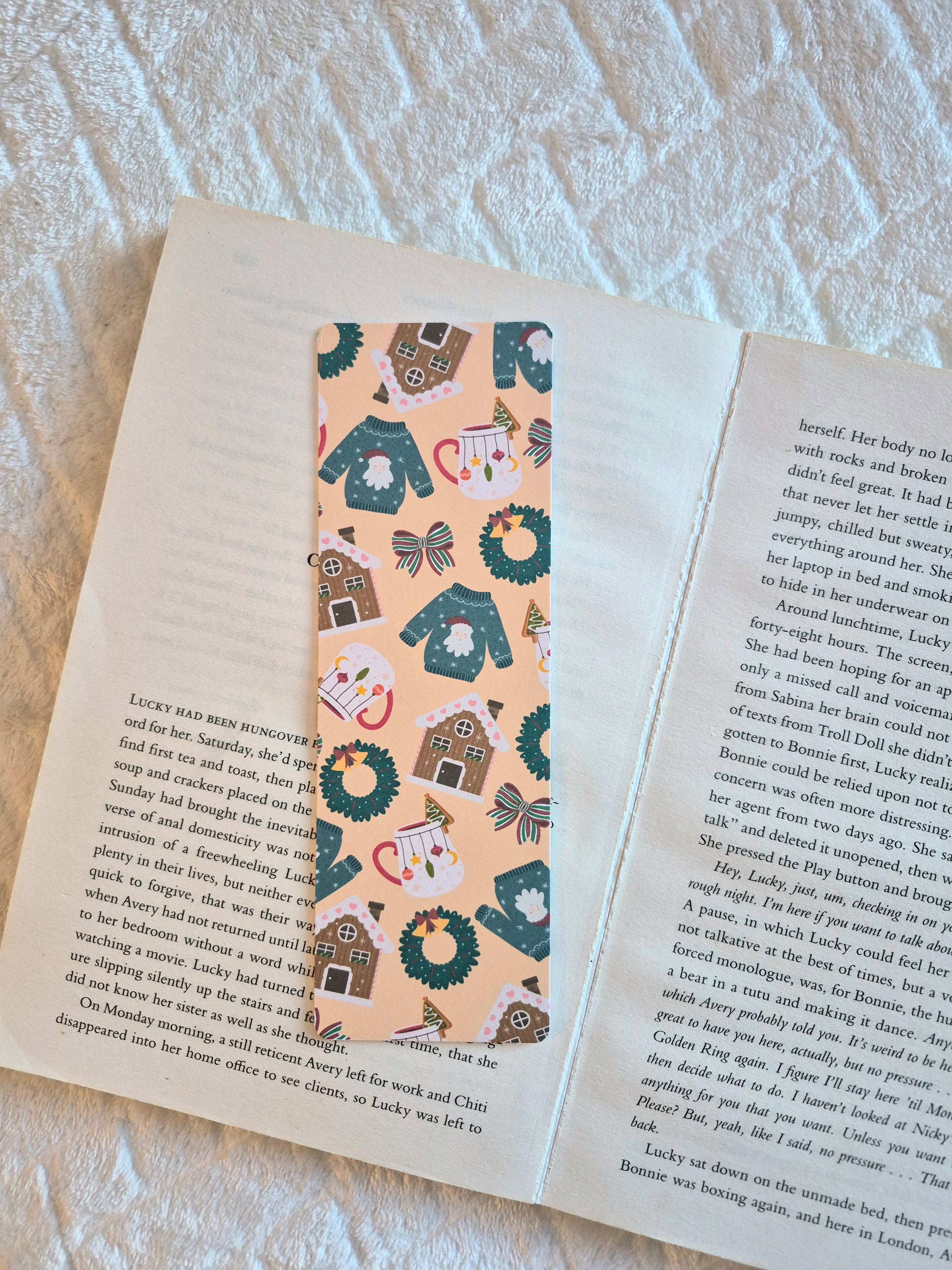 Christmas sweater and cosy vibes bookmark