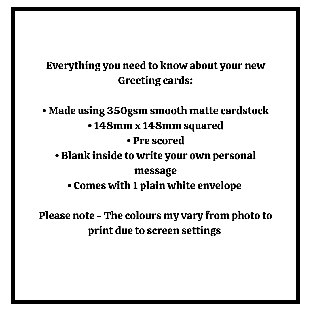 Please note - The colours my vary from photo to print due to screen settings.